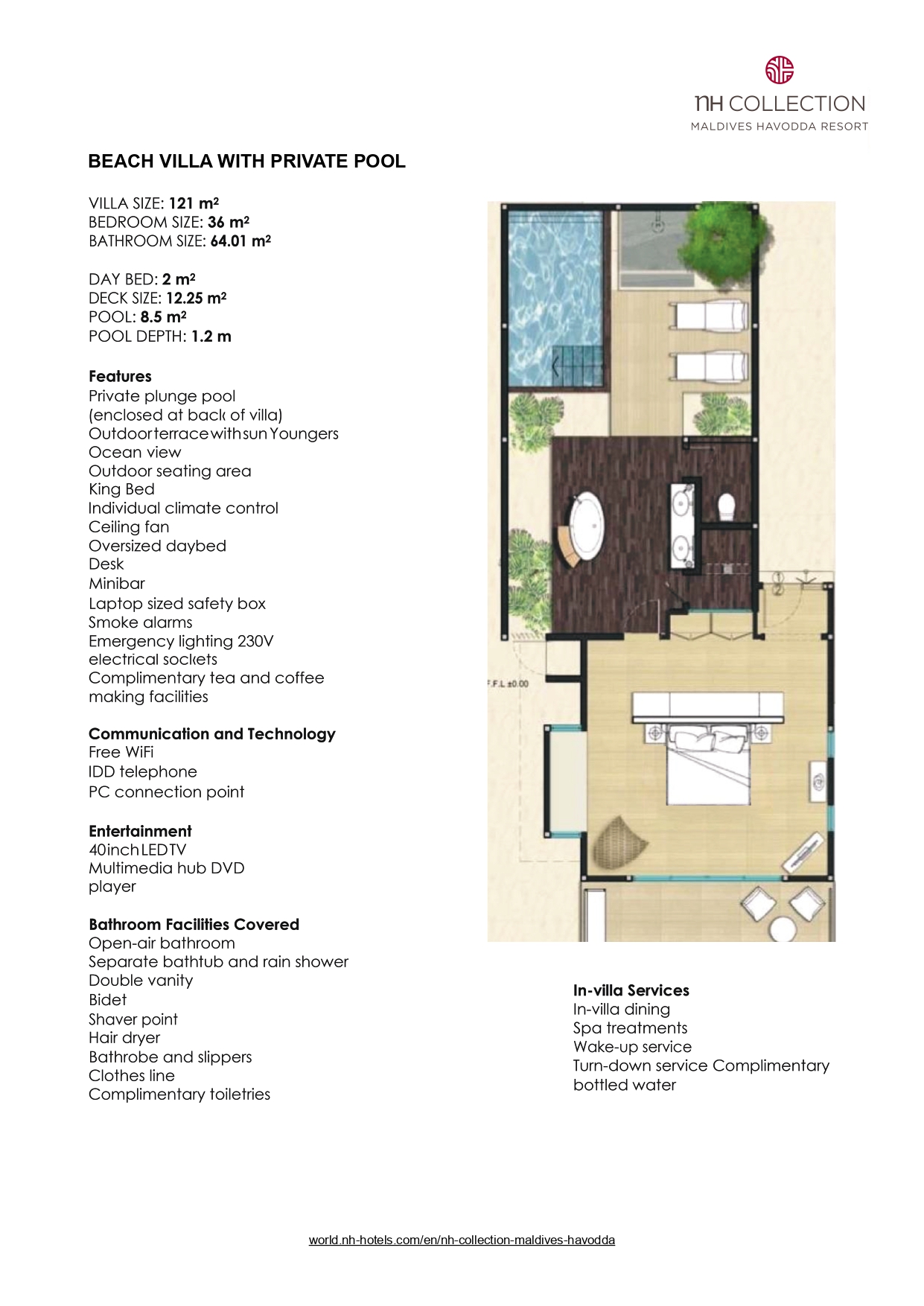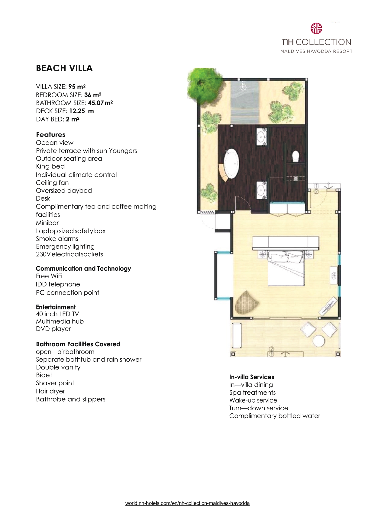 NH Collection Maldives Havodda Resort — это отель с белоснежным пляжем и просторными виллами, расположенный на отдалённом тропическом острове Хаводда атолла Гаафу Далу. К услугам гостей — рестораны и бары, спа-центр, детский клуб, занятия дайвингом и снорклингом. Отель идеально подходит для романтического, семейного, спокойного и активного отдыха.